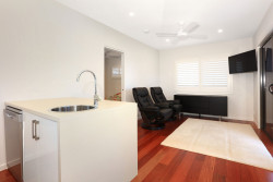 The addition included a bedroom with ensuite and walk-in robe, kitchen, lounge, dining and balcony. The outcome was better than they had imagined with the views from the balcony out to the lake being a main feature.