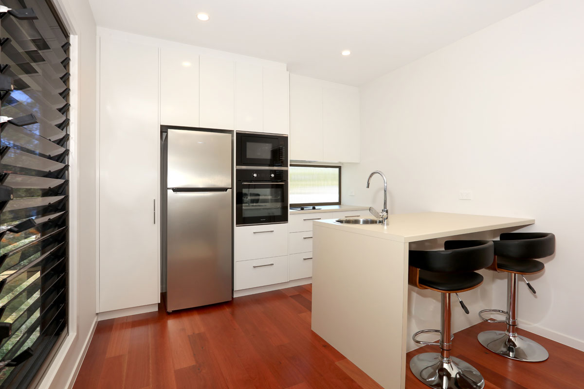 The addition included a bedroom with ensuite and walk-in robe, kitchen, lounge, dining and balcony. The outcome was better than they had imagined with the views from the balcony out to the lake being a main feature.