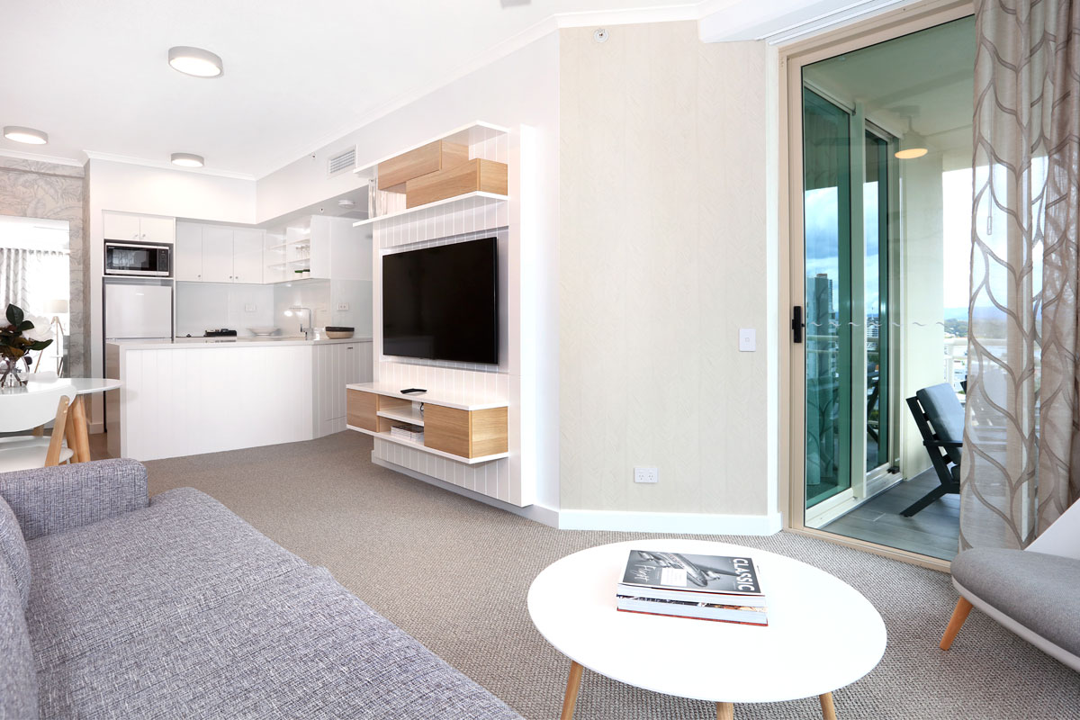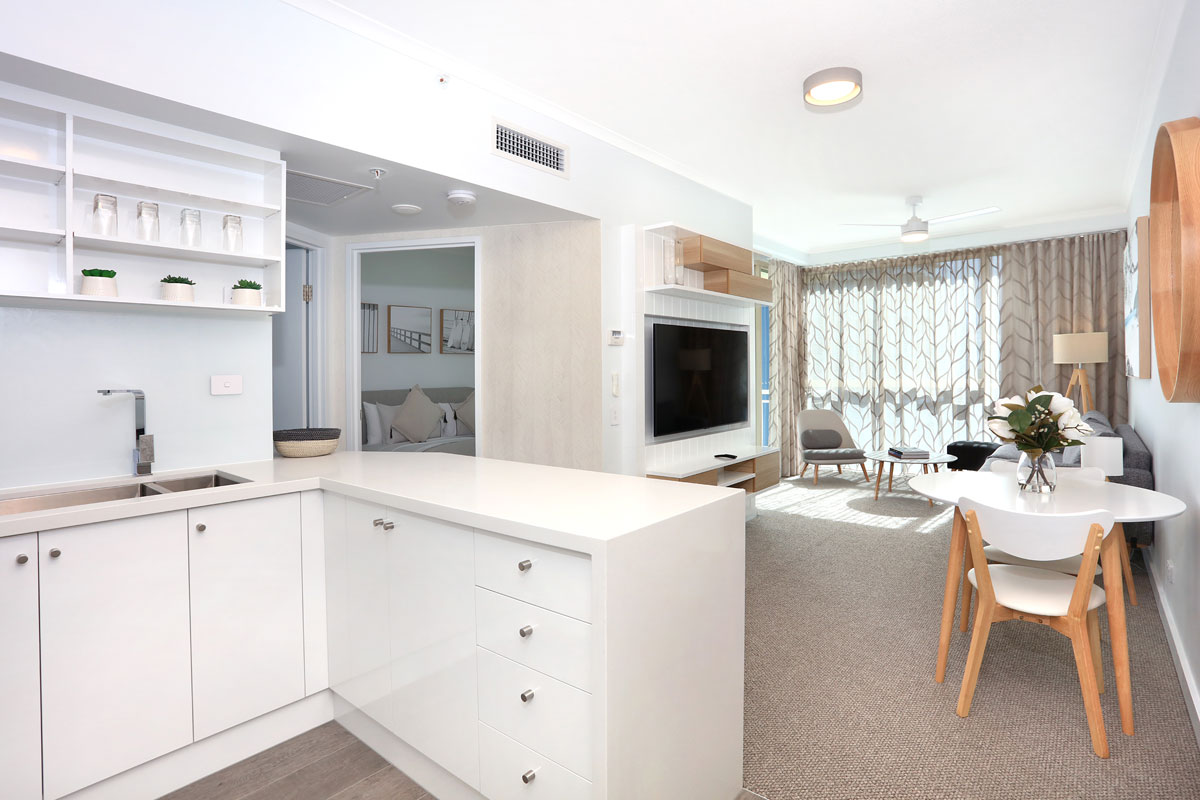 Our brief for this renovation by the owner was to totally remove the existing internal cabinetry, fixtures and fittings of their newly acquired one bedroom beach unit. The reason for this full renovation was management had advised that they could rent the unit out for a much larger nightly rental if totally renovated to a luxury high end standard.
