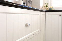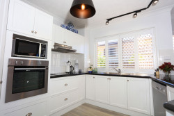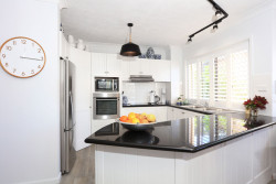 Our client wanted to create a beach style design to enhance the relaxed beach lifestyle of the Gold Coast. As the kitchen layout was not going to be changed and because the benchtops, appliances and internal frames of the kitchen cabinets were in good condition, we were able to suggest a kitchen reface where we just replace the doors, drawers and gable ends, saving big dollars.