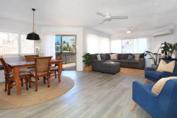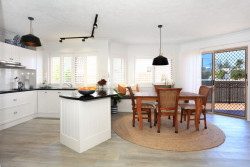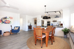 Our first ever renovation done completely remotely. Our client was caught up in COVID-19 lockdowns interstate and unable to be here in person whilst her renovations took place. The brief was to renovate her tired three bedroom beach unit, updating the kitchen, lounge, dining, and bedrooms, and replacing all the floorings, as well as repainting the entire unit.